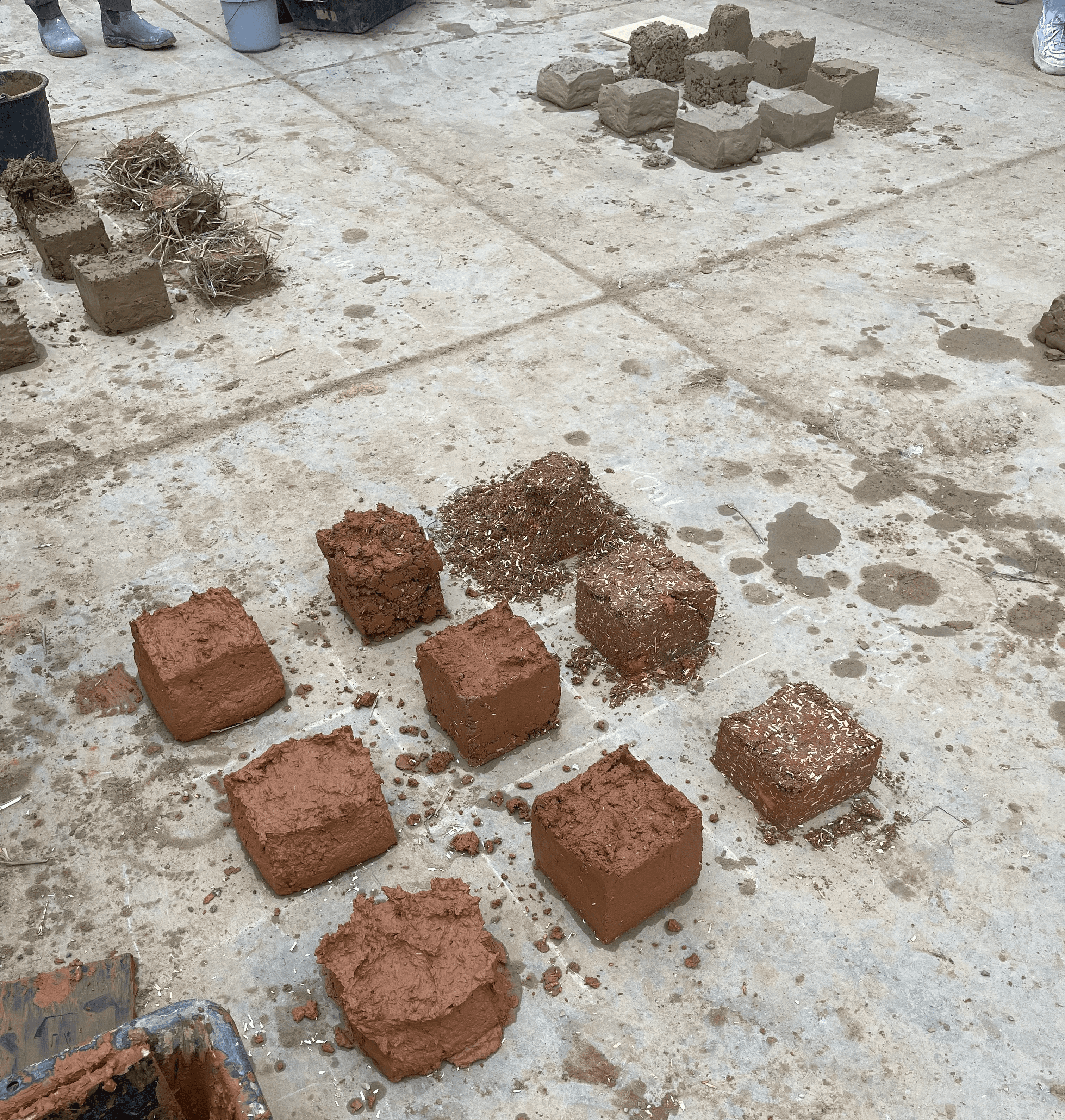 We also had the opportunity to create samples of rammed earth, which involved compacting layers of soil into formworks to produce solid, durable components. This tactile process was both challenging and rewarding, teaching us the importance of precision, patience, and an intuitive understanding of materials. Taking out our rammed earth forms, all with different layers reinforced the notion that building with earth is as much an art as it is a science.